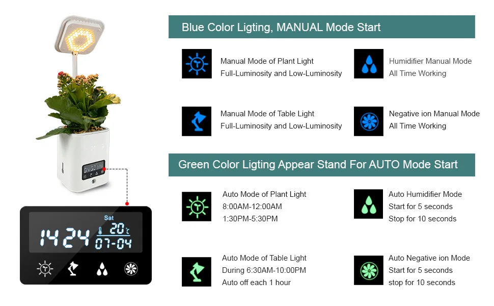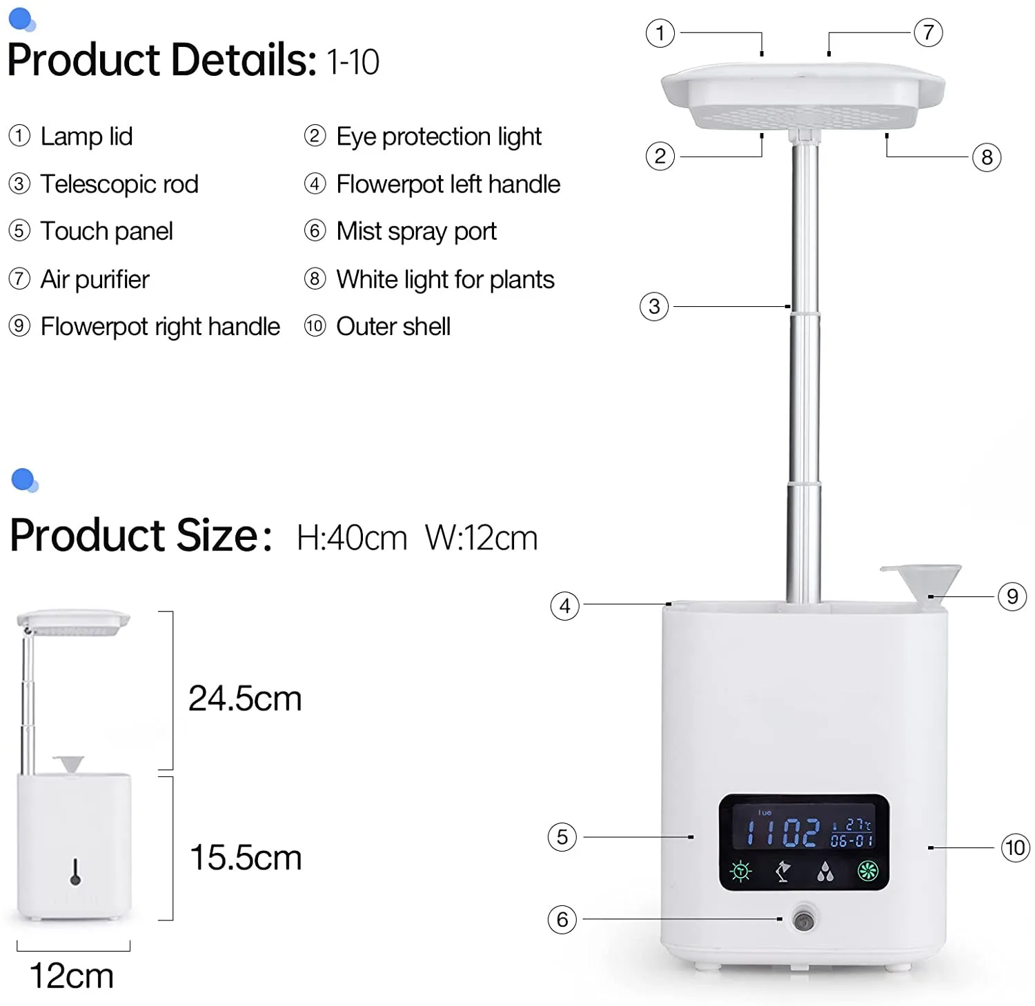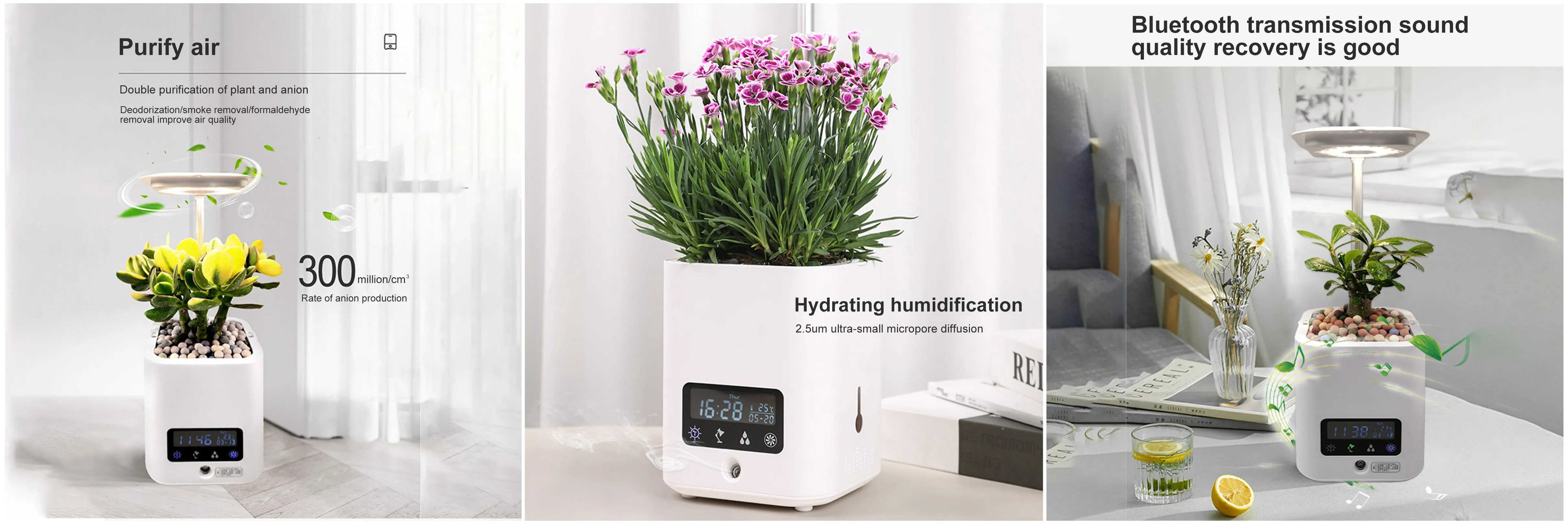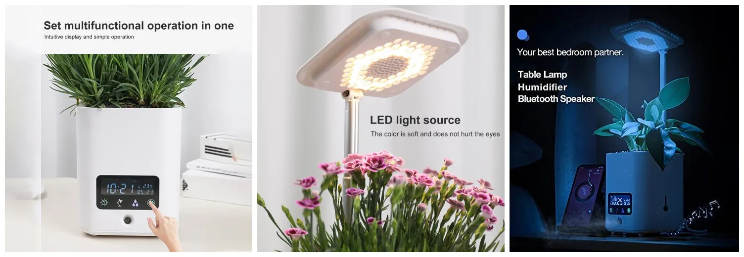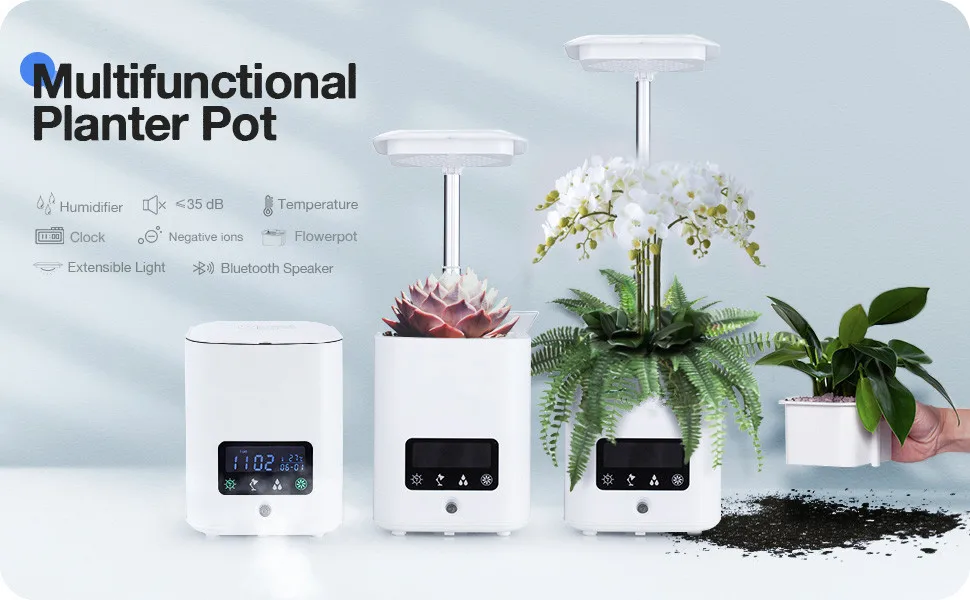 5.Ideal Gift:Creative plants flower pot, incredible combination of planter, grow light, humidifier, bluetooth speaker, desk clock, and thermometer. Ideal gift for kids, parents, lovers, friends, shows the passion of life