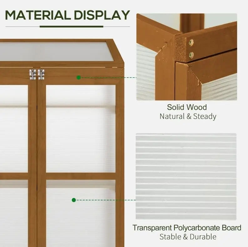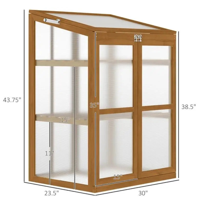 Wooden Cold Frame Greenhouse, Mini Planter Box, 30" L x 24" W x 44" H, Brown